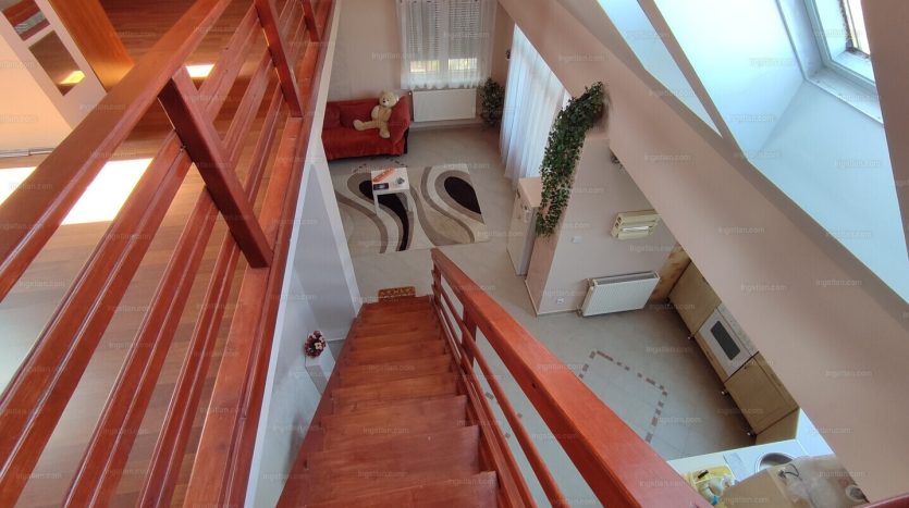 Itt 85m2-en amerikai jellegű 30m2-es nappali-étkező konyha, 2db közel 20m2-es hálószoba, fürdőszoba káddal és hidromasszázsos zuhanykabinnal, valamint egy gyönyörű 28m2-es galéria került kialakításra, mely szobaként vagy, dolgozó felületként is használható.